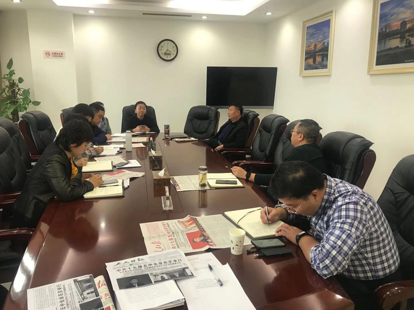 11月5日,市总工会组织机关及所属事业单位5个党支部集中传达学习了习近平总书记在党的十九届五中全会上的重要讲话和全会精神,市总在家领导班子成员参加了学习活动。