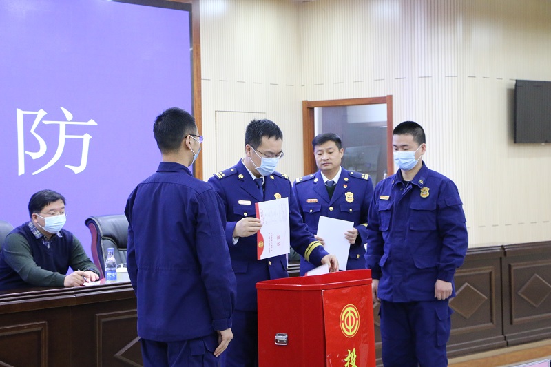 1月12日上午,秦皇岛市消防救援支队成功召开了工会成立大会暨第一届会员代表大会第一次会议。这是该市第一家由现役编制转为行政编制后建立起来的工会组织,金彩汇副主席陈勇珲到会祝贺。
