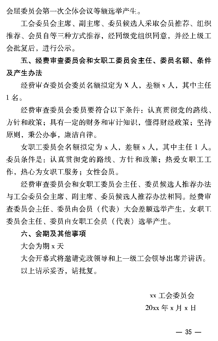 (模板)关于召开XX工会第X届会员(代表)大会第一次全体会议的请示