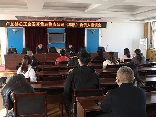 为推进卢龙县货运物流行业建会工作,11月19日,卢龙县总工会在县交通运输综合执法大队5楼会议室专门召开货运物流公司(车队)负责人座谈会。卢龙县总工会党组书记、常务副主席张少祥出席会议并讲话。