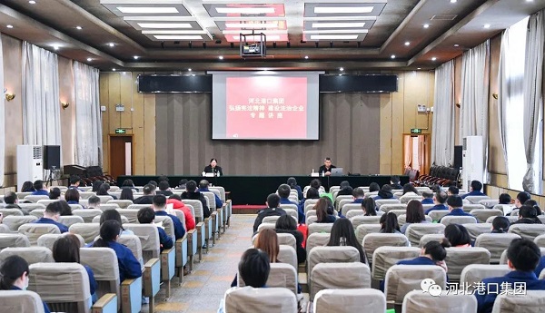 在第八个国家宪法日、第四个“宪法宣传周”即将到来之际,11月24日,河北港口集团邀请燕山大学纪委副书记、监察处长、法学博士张明教授,做“弘扬宪法精神、建设法治企业”专题讲座。秦港股份公司工会主席陈林燕主持讲座并讲话,相关部门领导、法律干事、职工普法骨干参加学习。