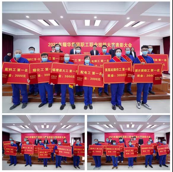 对获得三连冠的耀技公司电焊工李延臣和配料工杨玉忠额外给予1万元一次性奖励;对获得两连冠的弘华公司电工白冰和耀技公司氮氢站操作工梅开国额外给予5千元一次性奖励。