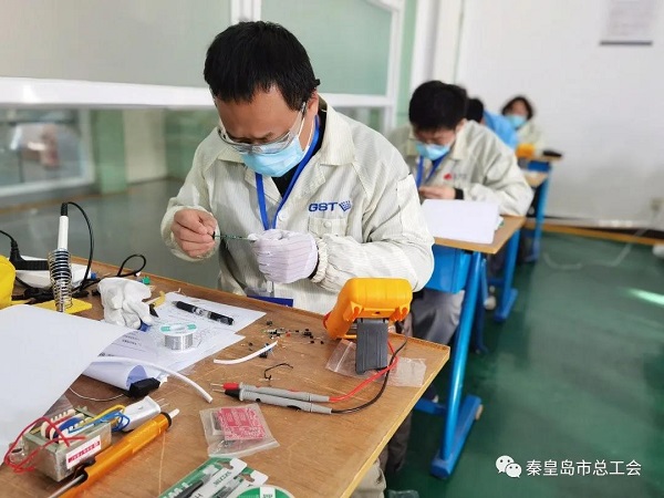 该大赛是全市“大众创业、万众创新”十二项市级比赛之一,比赛分理论考试和实际操作两部分,由3:7比例设定,比赛设置个人一、二、三等奖。来自海湾公司、泰和安科技、鹏鼎控股、碁鼎科技、康泰医学、金海粮油、富连京电子、河北鹏远等单位的48名职工选手参加比赛。