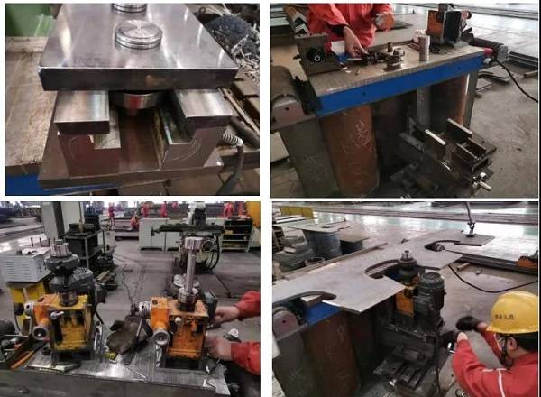 项目概况:近年来随着对钢结构桥梁U肋隔板单元抗疲劳、抗裂纹性能的不断探索,涉及隔板(接板)单元与U肋焊接区开匀顺过度双面坡口的项目越来越多,作业人员火焰切割、打磨该坡口效率低、质量差、后续焊接缺陷多,一种自动双面坡口铣工艺机械设备首次研发并应用到隔板(接板)单元U肋焊接区匀顺过度双面坡口加工生产中:新型自动双面坡口铣工艺机械设备以机械设备代替人工进行坡口加工,效率高、质量优、生产效率、质量稳定;同时进行双面坡口加工,减少作业转序占用天车作业时间,减少钢板翻身带来的安全隐患。依托于舟山港主通道公路工程钢结构项目、京雄桥项目,形成了一套广泛应用于坡口长度小、机加空间受限及坡口变化、自动定位、机加坡口的工艺机械装备,并应用于工程实践,扩展集团公司加工构件坡口类型的能力,解决生产难题,节省作业场地、减少作业人员和辅助吊装设备的配合、提高了生产效率和产品质量。且与传统工法相比,降低了切割、打磨成本,加快了制造周期,达到“降本增效”的效果。