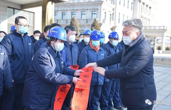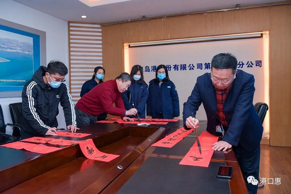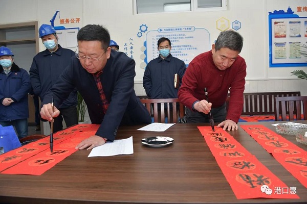1月19日,秦港股份公司工会组织开展“送文化到基层,送春联到班组”活动。河北港口集团党委常委、董事,秦港股份公司总裁杨文胜,秦港股份公司副总裁陈立新、工会主席杨军,与河北港口集团书法家协会同志到港口机械公司、一公司、杂货公司,为辛勤工作在生产一线的职工写春联、送“福”字,给即将来临的春节增添了浓浓的喜庆氛围。