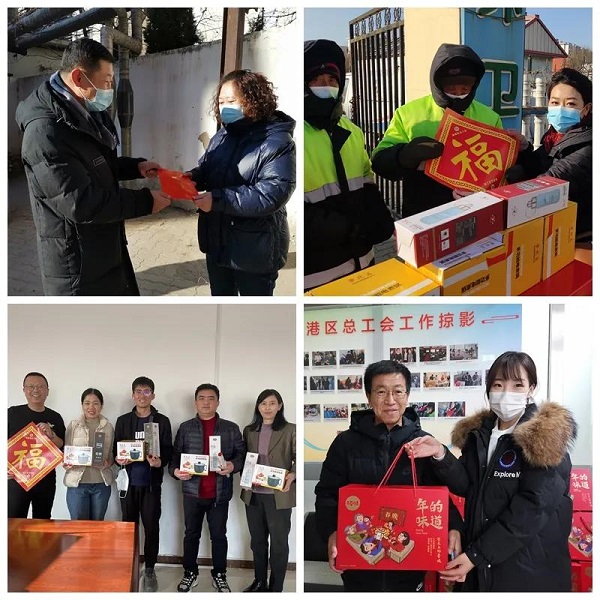 区人大常委会党组副书记、副主任、区总工会主席苏文胜率慰问组,先后到园林局、城管局、卫健局、海洋食品厂、耀华装备等23家单位进行走访慰问,重点聚焦新就业形态劳动者、已建档困难职工、劳动模范以及战斗在新冠肺炎疫情防控的一线职工和节日期间坚守岗位的各行各业职工,为他们送去了米面油等生活物资;方便面、火腿肠、露露等慰问品;帽子、手套、保温饭盒、冬被等暖冬物资;84消毒液等防疫用品;春联、福字及慰问金。