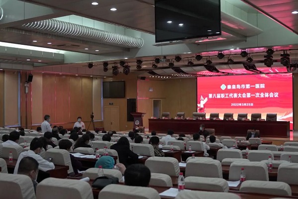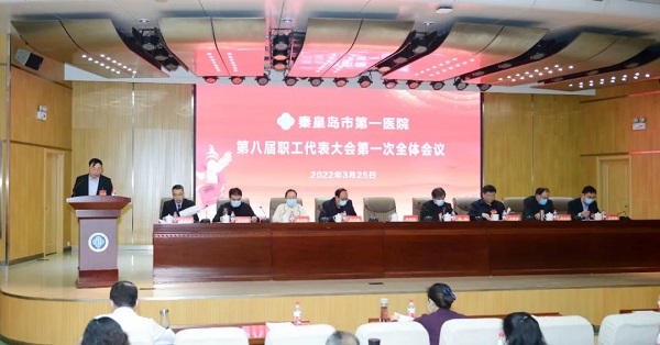 2022年3月25日上午8时,伴随着庄严的国歌,秦皇岛市第一医院第八届职工代表大会第一次全体会议在我院报告厅隆重召开。新一届308名正式职工代表出席会议,共商医院发展大计。鉴于疫情原因,会议设立1个主会场,3个分会场。院长尹福在、党委书记魏鹍及其他院领导班子成员参加会议,会议由工会主席李洪涛主持。