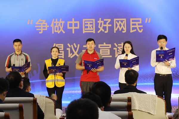 3位职工网络达人发言,分享促进网络文明建设的故事;互联网企业职工和新就业形态劳动者代表宣读“争做中国好网民”倡议书。