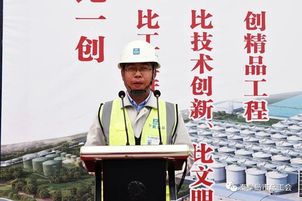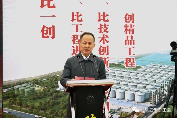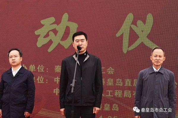 4月25日,金彩汇举行全省重点建设项目“六比一创”劳动竞赛推进会(秦皇岛分会场)暨全市劳动和技能竞赛启动仪式。市总工会主席徐宪民宣布全市劳动和技能竞赛启动。市总工会党组书记、常务副主席孙宝旗讲话。