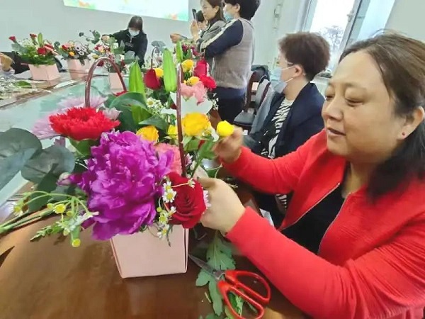 为弘扬中华民族孝敬父母、珍视亲情的传统美德,5月6日下午,北戴河区供电中心女工委员会以“爱在心中、感恩更美”为主题,精心组织了一场插花活动,为二十多位女职工送上了节日的祝福。活动现场,专业插花老师一边向大家讲解花材挑选的诀窍和插花色彩搭配的技巧,一边现场演示插花技艺。在老师细致教导下,大家兴致盎然地修枝剪叶、扦插布局,尽情享受着亲手创作的乐趣和插花艺术带来的愉悦,欢乐和谐的氛围在花室蔓延。此次母亲节活动不仅向女同胞们传递了节日的祝福,还充分的展现了女同胞心灵手巧、蕙质兰心的一面,陶冶了情操也丰富了女职工的精神文化生活,女职工们纷纷表示,这次活动不仅仅是一束鲜花的制作,更是感受到公司大家庭对女职工的关怀和温暖,对中华民族文化传统的传承!
