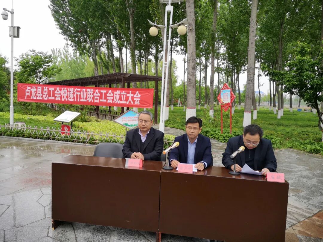5月12日,卢龙县快递行业联合工会在卢龙县劳动公园成立。卢龙县总工会党组书记、常务副主席张少祥、卢龙县总工会副主席庄斌、卢龙县交通局工会主席郑向东等领导参加此次入会仪式。