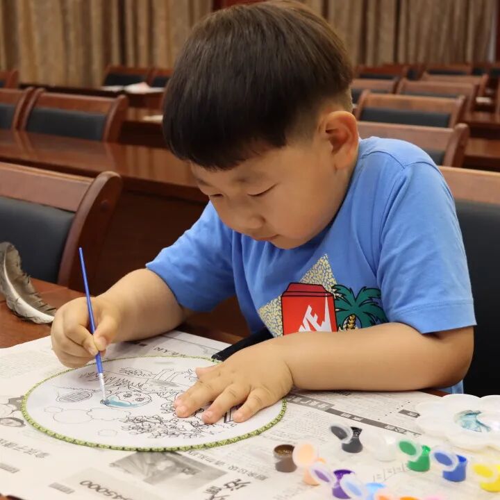 在活动现场,孩子们纯真的笑脸上洋溢着幸福和喜悦,专注的表情一丝不苟的描画着精美的图案,一把把圆圆的团扇承载着孩子们的梦想,使“六一”庆祝活动真正成为孩子们展示自己的大舞台。