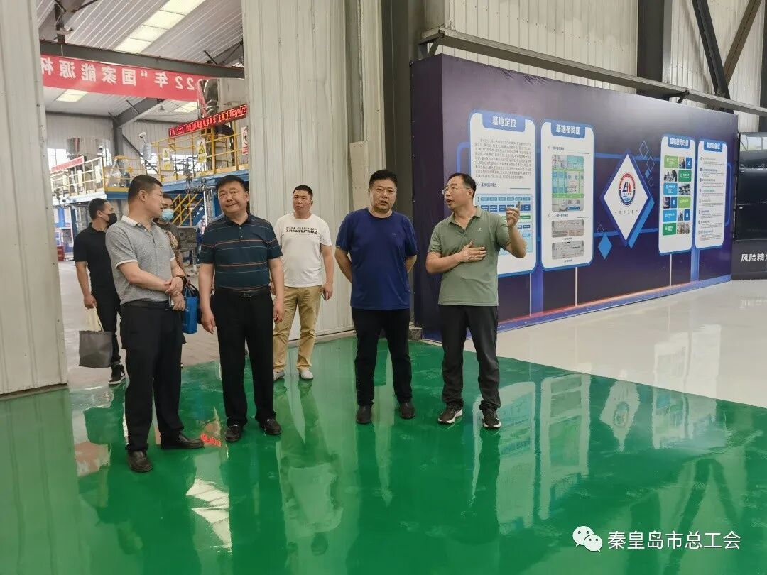 6月21日,金彩汇副主席张安华带领专项调研组一行4人,深入秦皇岛博赫科技开发有限公司开展职工队伍风险排查化解督导工作,区人大副主任、区总工会主席苏文胜,区总工会常务副主席张华津,副主席杨晶晶陪同。