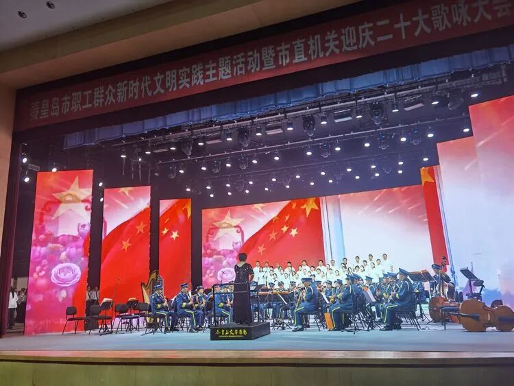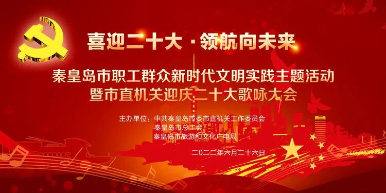 为迎接党的二十大胜利召开,推动党史学习教育常态化长效化和深入开展“强国复兴有我”群众性主题教育活动以及秦皇岛市职工群众新时代文明实践主题活动,市委市直工委、市总工会、市旅游文广局“七一”前夕共同举行“喜迎二十大•领航向未来”秦皇岛市职工群众新时代文明实践主题活动暨市直机关迎庆二十大歌咏大会,回顾党的光辉历程,讴歌党的丰功伟绩,传承并光大中国共产党人的精神谱系,凝聚起建设一流国际旅游城市和全面建设社会主义现代化国家的磅礴力量!市人大常委会副主任郭爱民,市政协副主席安生宏,以及主办方市委市直工委、市总工会、市旅游和文化广电局的主要领导同志和河北科技师范学院音乐学院的专家评委出席活动。参加此次歌咏大会的市直机关干部职工合唱团有10个共700多人,还有10个单位上报了合唱视频,因为工作原因未能参加专场汇报演出。市委市直工委对歌咏大会进行了网络直播,观看人数达到创纪录的2.5万+。学习强国、河北日报、秦皇岛电视台、秦皇岛广播电台、秦皇岛日报、秦皇岛晚报以及微信视频号、微信公众号、快手、抖音等社交平台进行了广泛宣传报道,产生了良好的社会影响,树立了鲜明的政治导向,营造了浓厚的迎庆二十大的氛围。岁月如刀,血火犹新。一百多年来,伟大的中国共产党不忘初心、牢记使命,苦难辉煌、砥砺向前,自我革命、永葆青春,英勇奋斗、不负人民,高扬社会主义和共产主义伟大旗帜!让我们紧密团结在以习近平同志为核心的党中央周围,牢记总书记对河北工作的指示以及对河北人民的亲切关怀和殷殷嘱托,忠诚捍卫“两个确立”,坚决做到“两个维护”,坚持“三统筹三扩大四创建”,突出抓好“六件大事”,加快建设一流国际旅游城市,迎接二十大,庆祝二十大,护航二十大,服务保障二十大,以优异成绩向党的二十大献礼!