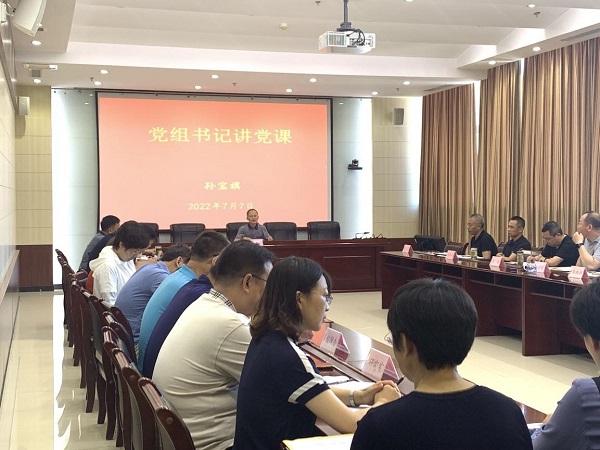 7月7日,市总党组书记、常务副主席孙宝旗为机关全体党员干部职工讲授“七一”专题党课。