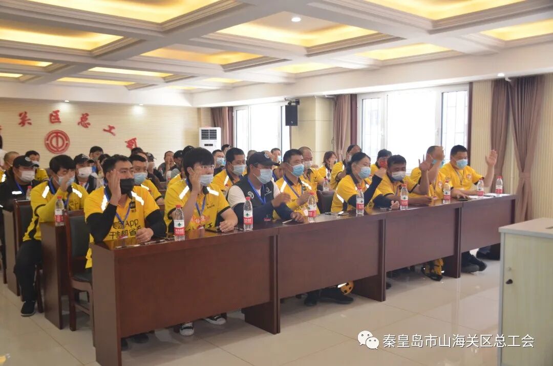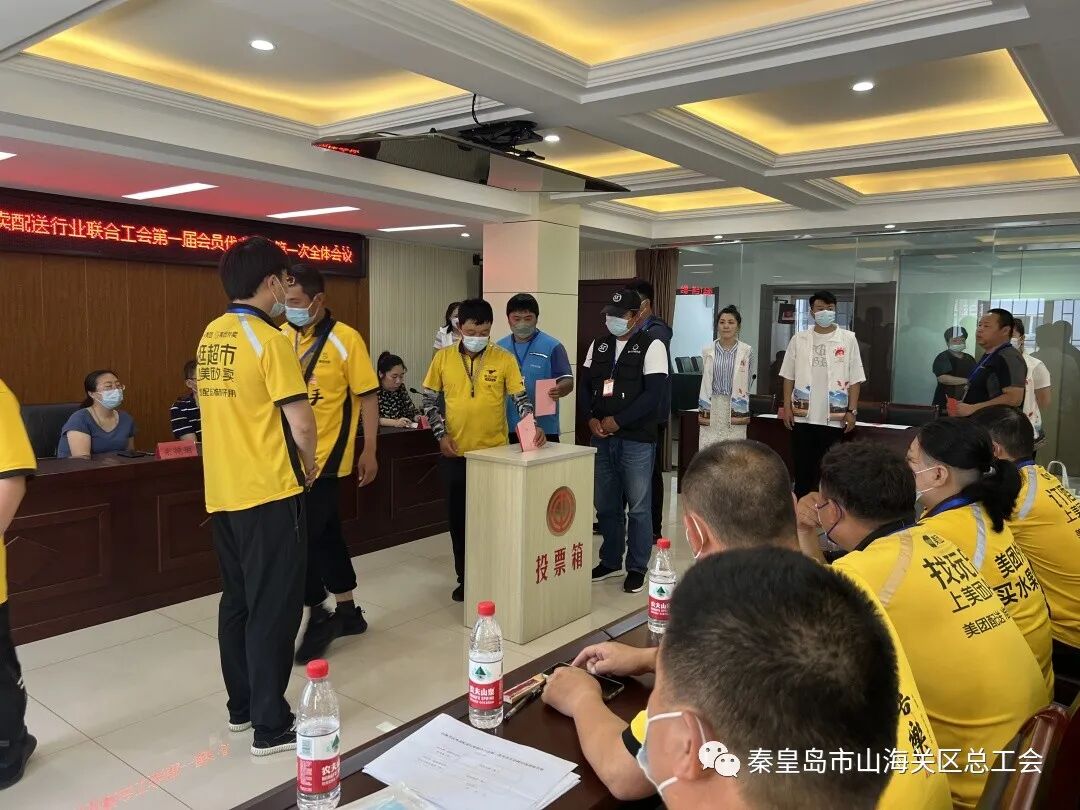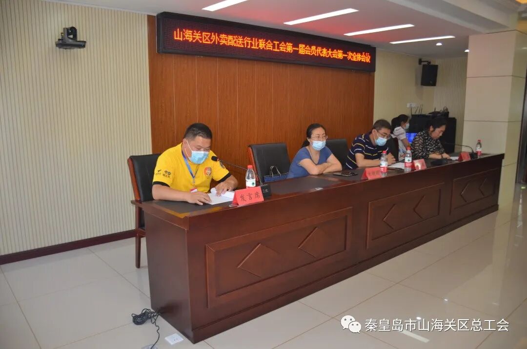 7月14日,山海关区外卖配送行业联合工会在区职工服务中心二楼召开第一届第一次会员代表大会,来自美团、顺丰、饿了么三家外卖企业40名会员代表参加会议。区总工会常务副主席王巍、区食品稽查大队综合科长朱艳丽出席会议。