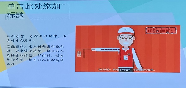 市公安局交警支队李警官根据辖区道路交通特点,结合自身工作经验,围绕交通劝导的方式、礼仪、站姿站位、指挥手势、言行举止和如何劝导行人、非机动车遵守交通信号规定、规范有序停放等,对全体志愿者进行了详细讲解。