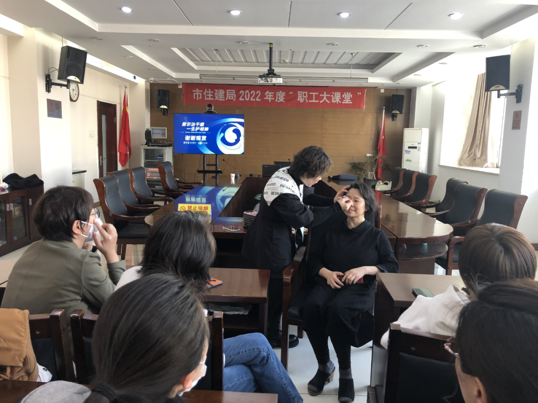 三八节期间,邀请爱尔眼科医院医生和资深化妆师开展了“庆祝三八妇女节、体现现代女性美”专题活动。授课老师就眼健康知识科普、干眼症的预防及护理、职业女性日常化妆技巧等进行了系统讲解和指导,特别设置了化妆体验环节,结合实例与女职工进行现场互动,课堂气氛轻松活跃,老师们的专业指导和解答让女职工受益匪浅。“职工大课堂”让女职工们在繁忙的工作之余放松身心、愉悦心情,陶冶了女职工们的情操素养。![]()