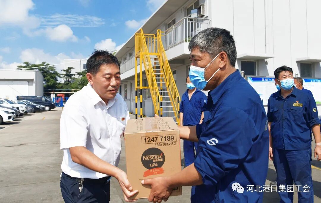 7月26日,中伏第一天。河北港口集团党委常委、董事、副总经理朱朝阳,秦港股份公司副总裁夏志新为烈日下坚守岗位的一线职工们送上矿泉水、咖啡饮料等防暑降温慰问品,把企业关心关爱送到职工心坎上。