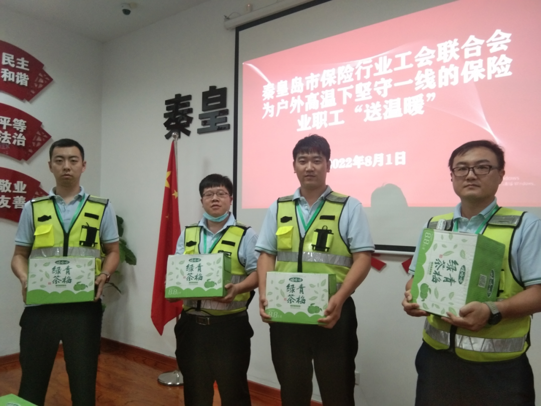 8月1日下午,金彩汇党组成员、外商投资企业工会主席曹文荣到市保险行业工会联合会开展“送清凉”活动,代表省金融和服务业工会和市总工会慰问保险行业户外高温下坚守一线岗位的车险查勘员代表。曹文荣指出,进入暑期以来,随外地来秦人员的增加,汽车碰撞事故明显增多,出险查勘工作量加大,在高温天气作业的查勘员要在完成工作任务的同时注意防暑降温,做好防疫和安全防护工作,行业工会要切实发挥作用,把高温作业职工劳动保护工作作为暑期维护一线职工的权益的重要工作内容,抓实抓好。![]()