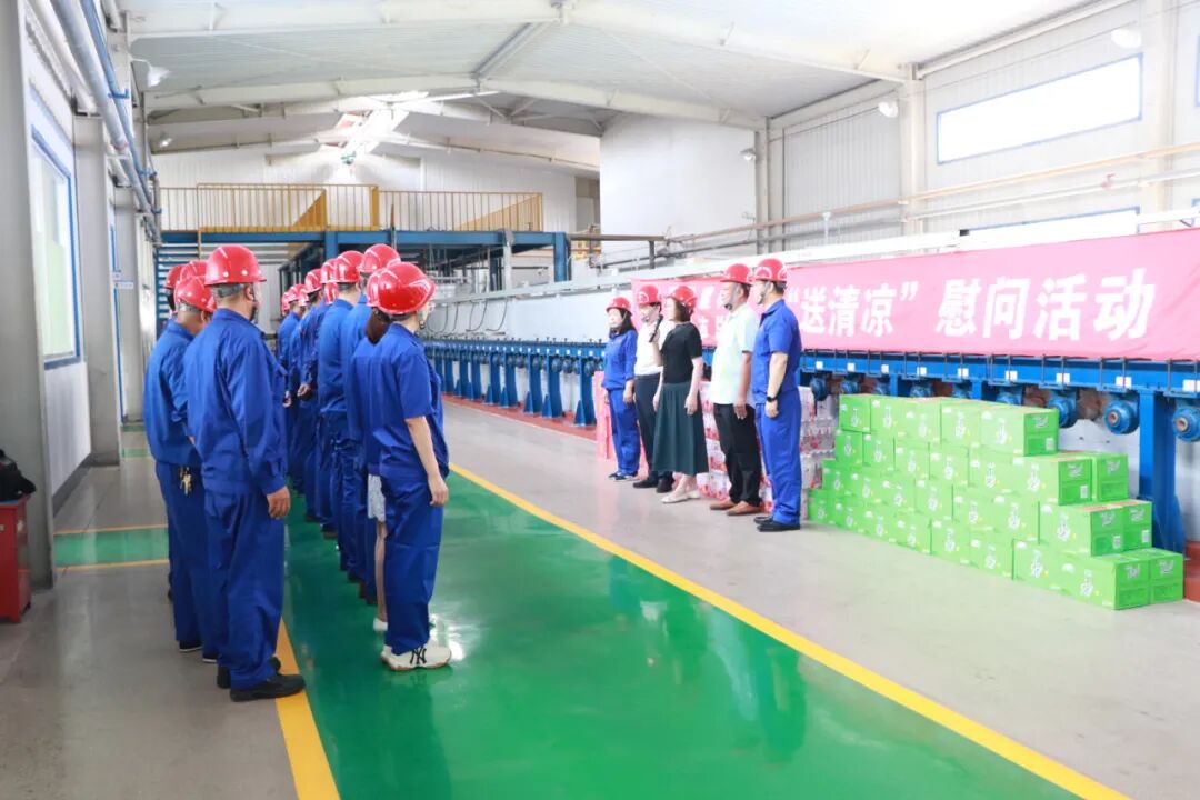 盛夏三伏,赤日炎炎。8月3日上午,金彩汇四级调研员张冬梅、财贸工会主任刘力恺到耀华集团秦皇岛弘华特种玻璃有限公司,代表河北省建设建材工会和金彩汇对坚守在高温一线的职工进行慰问。张冬梅一行深入工作一线,现场慰问职工,并为职工们送来了绿茶、酸梅汤、矿泉水等清凉饮料。