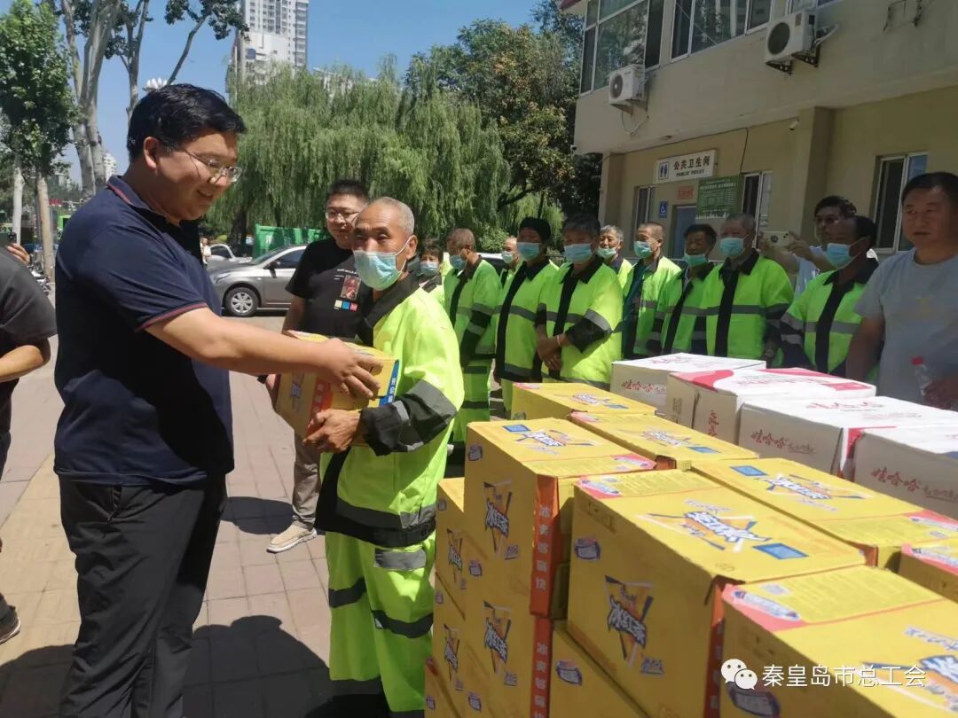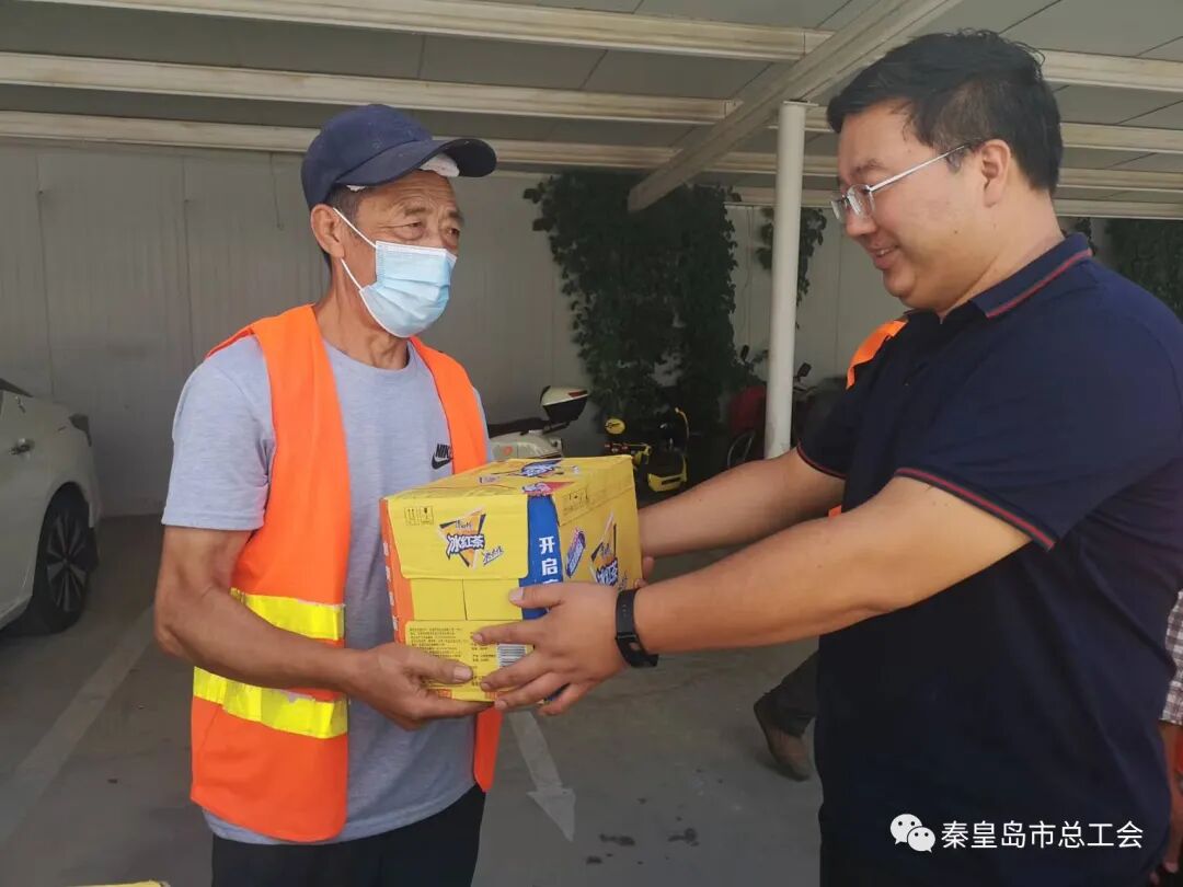 8月10日,市总工会党组成员、副主席陈勇珲先后到海港区园林局、环卫处送清凉,亲切慰问坚守在高温一线的环卫工人,为职工送去矿泉水、冰红茶、洗衣液等物资,让一线职工实实在在感受到了工会组织的关心和温暖。