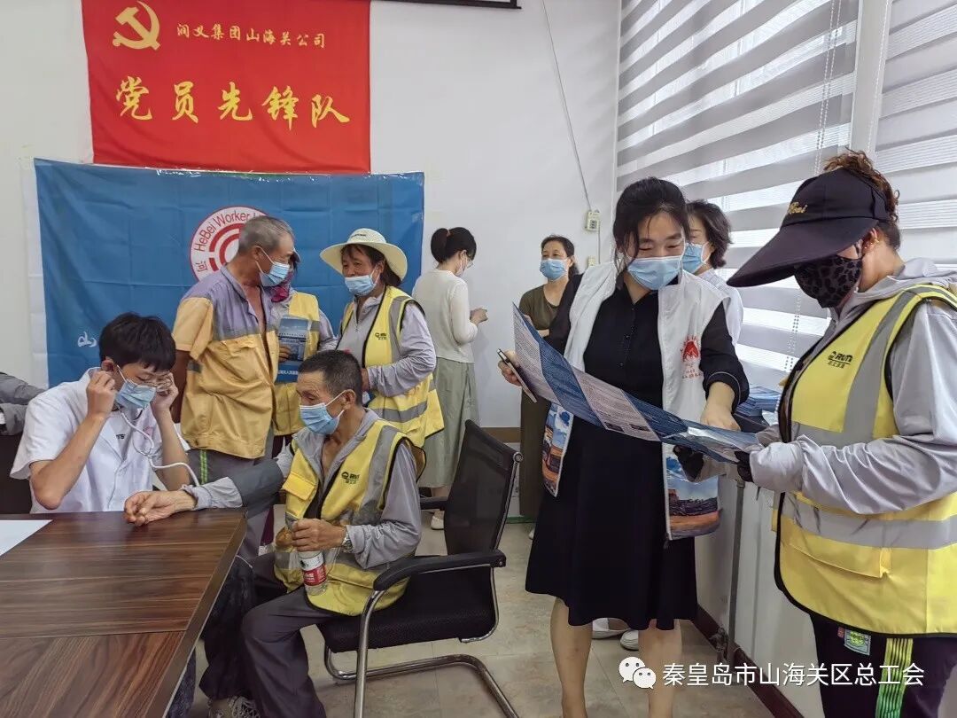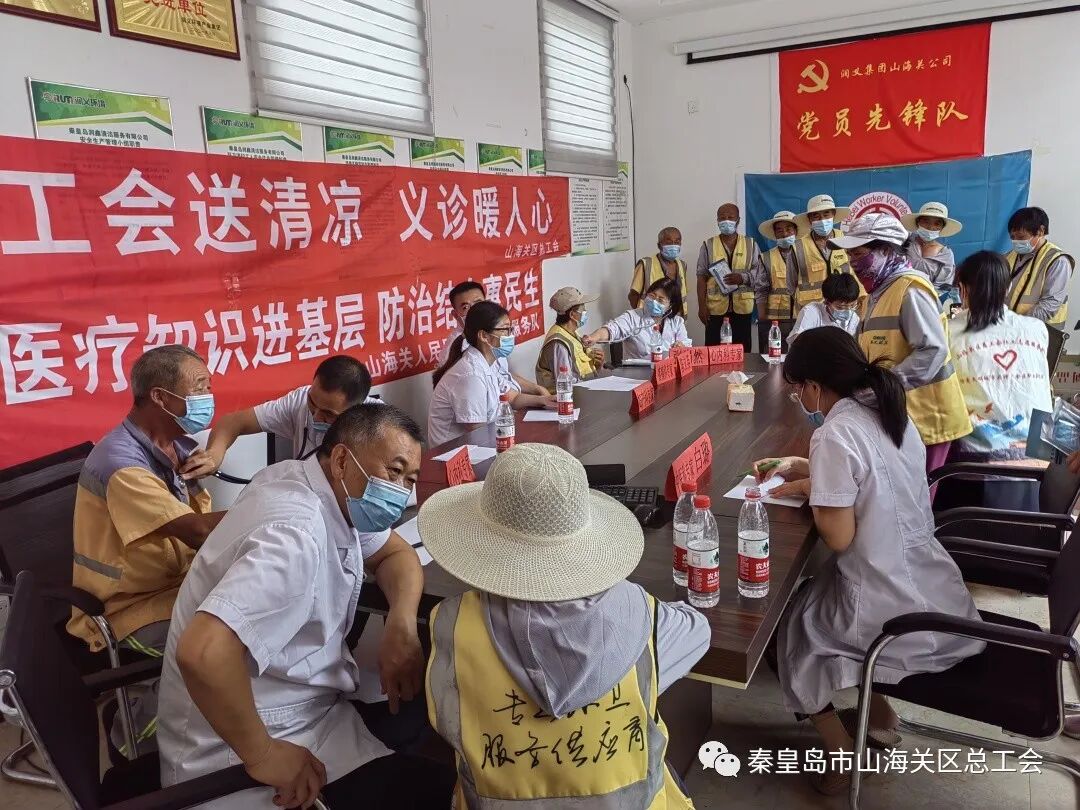 8月4日下午,山海关区总工会联合山海关人民医院职工志愿服务队开展“工会送清凉 义诊暖人心”活动,100余名一线环卫职工享受免费健康检查和咨询服务。