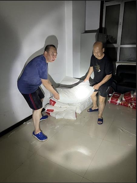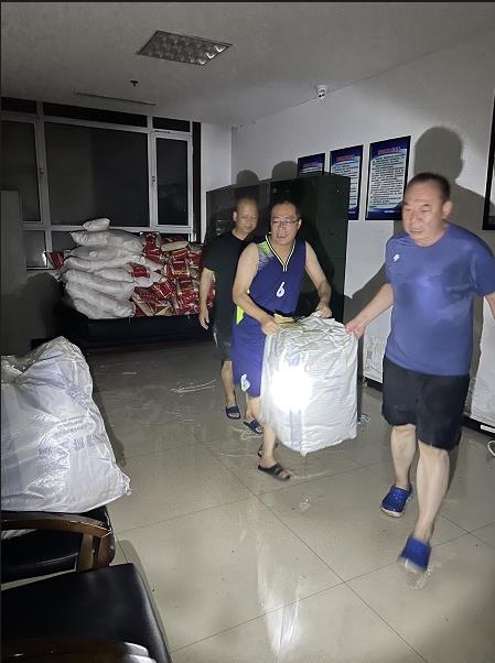 8月18日夜,我市降暴雨。23:00左右,门卫孙秦军发现门前水位已近上涨到台阶,随即向值班领导孔铁军汇报。孔铁军立即召集值班员胡博一起,取沙袋进行防汛,同时通知武威。曹文荣同志当时还在单位,武威也及时赶到,一起参加到防汛工作中。23:30左右,水位已漫过台阶,进入大厅,全楼也停电。为减少损失,众人将未发完的米面全部进行转运,手动关闭电梯,尽可能的向外清理积水。工人文化宫的张建军也及时赶到进行电力抢修。职工服务中心闫秀英一直关注服务中心水情,安排张新奇冒雨进行值守。凌晨4:30左右,大家才回去休息。