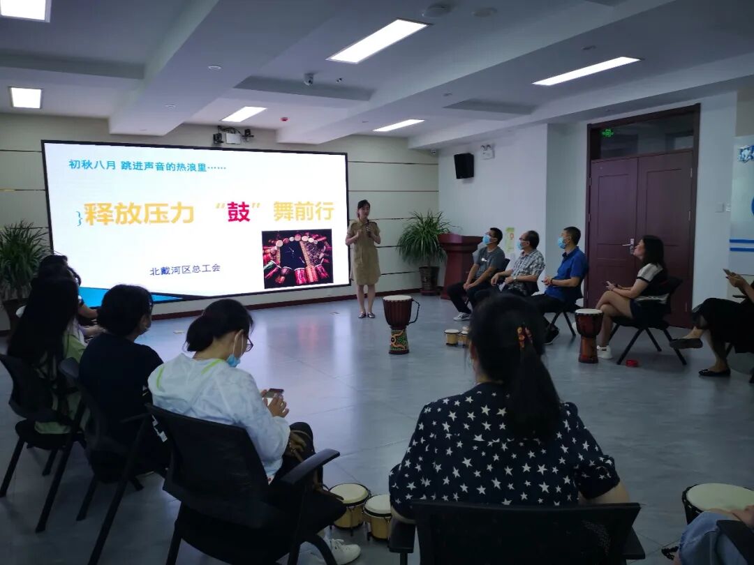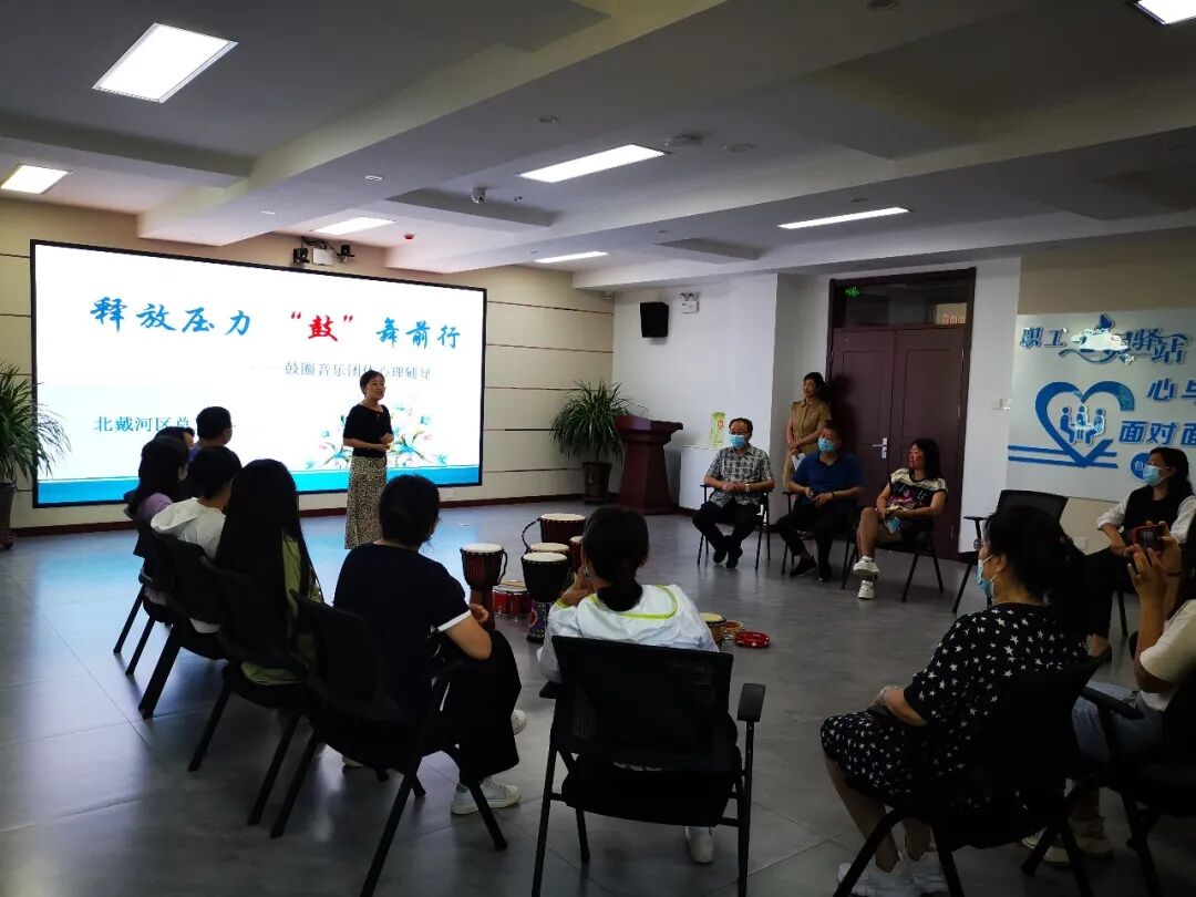 旅游旺季以来,广大职工顶烈日战酷暑,冲锋一线,尽职尽责,用拼搏和汗水确保旅游旺季各项工作有力有序推进。为帮助职工缓解疲惫身心,实现职工自我减压,助力职工更好服务旅游旺季,近期,北戴河区总工会组织开展了以“释放压力·‘鼓’舞前行”为主题的鼓圈音乐团体心理辅导活动,来自全区6个部门单位的20余名服务旅游旺季职工参加活动。