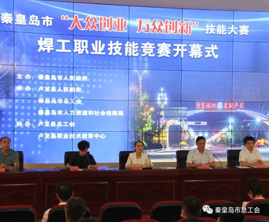 8月23日,秦皇岛市“大众创业,万众创新”焊工职业技能竞赛在卢龙县职业教育中心成功举办,大赛由市政府主办,卢龙县政府、市总工会和市人社局承办,卢龙县总工会和卢龙县职教中心协办。卢龙县委副书记董飞出席开幕式。副县长陈峰、市总工会党组成员、外企工会主席曹文荣出席开幕式并进行致辞。
