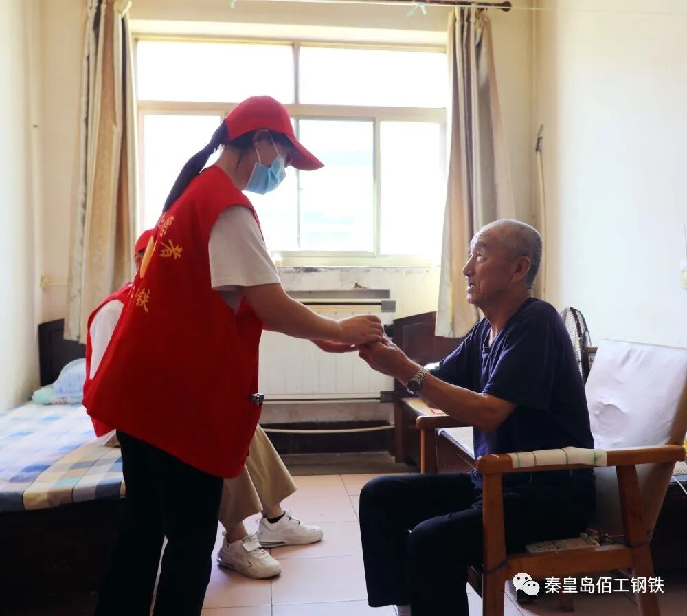 秋风送爽,丹桂飘香,在2022年中秋佳节到来之际,佰工钢铁志愿者服务队再次来到卢龙县光荣院,慰问退伍军人及家属,并为他们送去葡萄、红薯及稻香村月饼,叮嘱老人们保持乐观心态,保重身体,祝愿他们笑口常开、节日快乐。