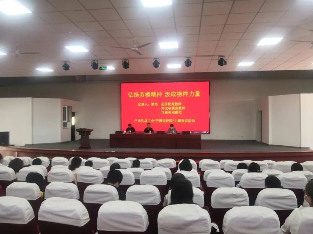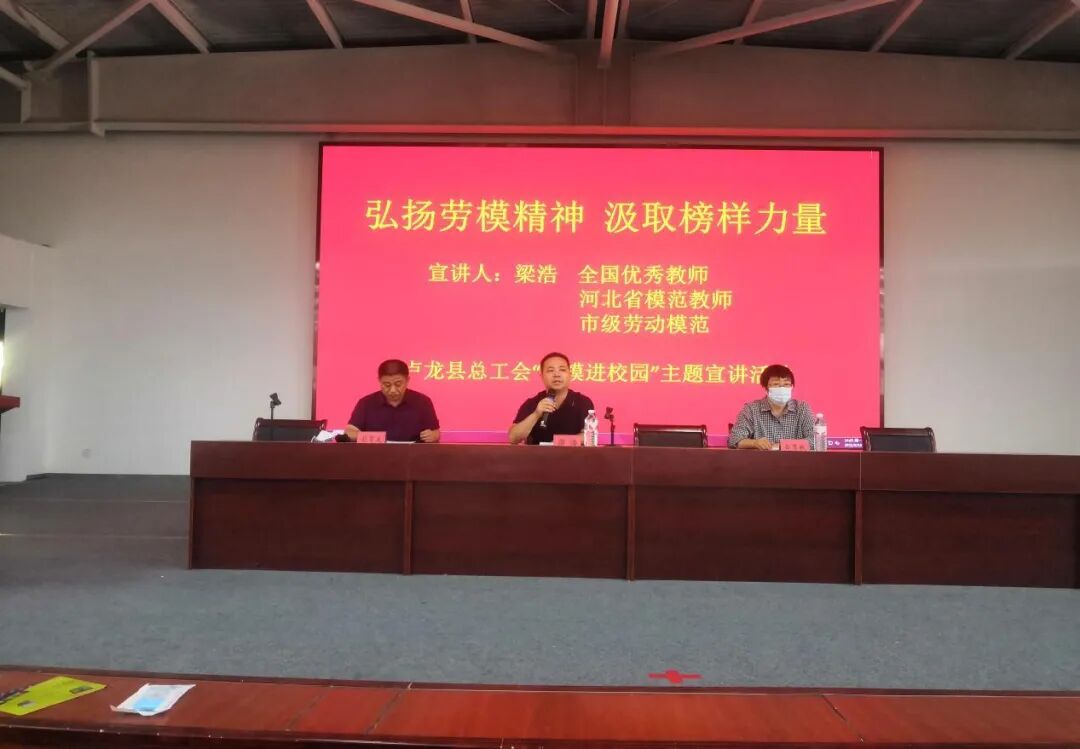 9月19日下午,卢龙县总工会联合卢龙镇总校到卢龙镇中学开展“弘扬劳模精神,汲取榜样力量”劳模进校园主题宣讲活动。