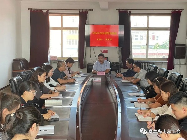 9月28日上午,市总工会党组成员、副主席陈勇珲到抚宁区进行习近平法治思想宣讲,抚宁区总工会和职工服务中心全体干部职工、企业职工代表参会,并进行交流座谈。