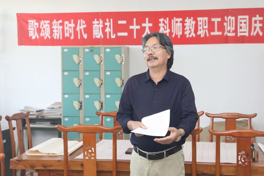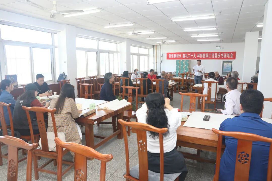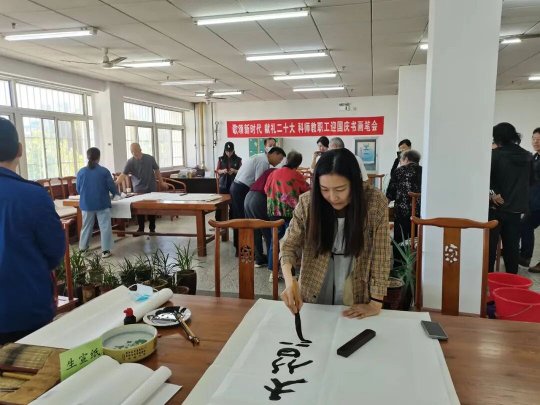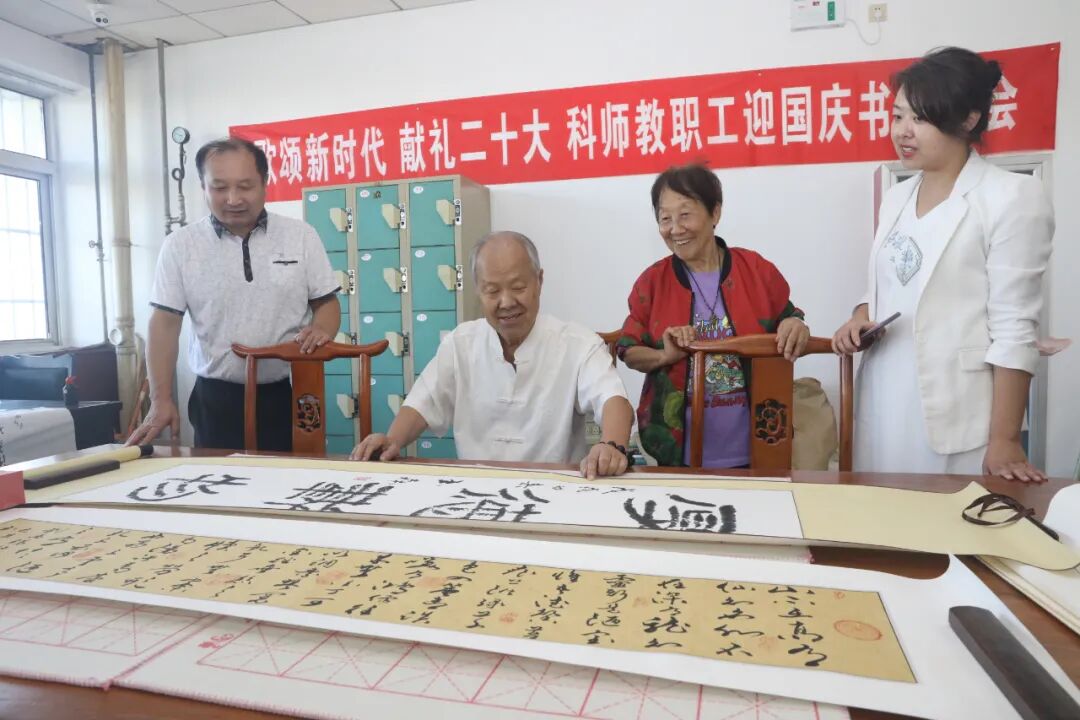 近日,河北科技师范学院教职工迎国庆书画笔会在秦皇岛校区图书馆书法练习馆举行。本次书画笔会以“歌颂新时代、献礼二十大”为主题,教职工书画爱好者现场书写、绘画,用优秀的艺术作品共迎国庆。