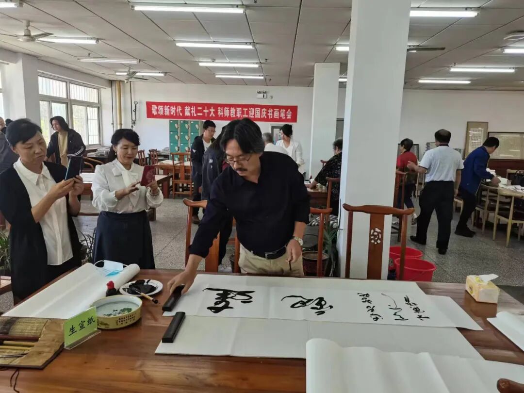 笔会为教职工书画专业同行和兴趣爱好者提供了交流互鉴的机会,搭建起互相切磋的平台。笔会现场或写或画,玉笺漫舒,玄墨轻舞,白云斑竹,苍岩飞瀑,大家互相观摩学习,交流经验,在泼墨挥毫中弘扬传统文化,提升思想觉悟。