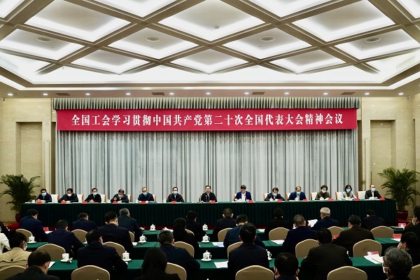 全国工会学习贯彻中国共产党第二十次全国代表大会精神会议10月24日以电视电话会议形式召开。全国人大常委会副委员长、中华全国总工会主席王东明出席会议并讲话,强调各级工会要把学习宣传贯彻党的二十大精神,作为当前和今后一个时期的首要政治任务,找准党的二十大精神与工会工作的切入点和结合点,踔厉奋发、勇毅前行、团结奋斗,在新时代新征程上不断开创党的工运事业和工会工作新局面。