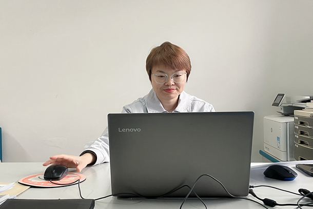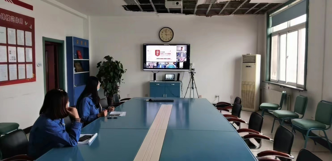 图为女职工居家参加宣讲学习活动