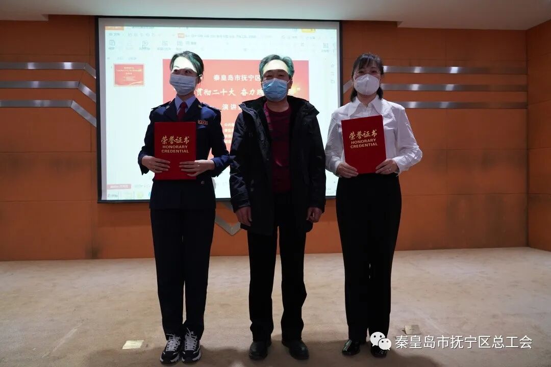 比赛通过演讲和PPT放映相结合的方式,讲述自身故事、身边故事,多角度展示抚宁区党员干部职工践行新使命、建功新时代的奋斗故事和精神风貌。演讲者们以壮志豪情书写青春理想,用一纸箴言诠释职责所在,满怀希望谱写使命担当。铿锵有力的声音、真挚的情感、富有感染力的语言赢得了台下观众的阵阵掌声。最终张雪娇、张文文等七名选手分别荣获一、二、三等奖,获奖者由区委宣传部、区总工会和区融媒体中心联合颁发证书,并对荣获一等奖、二等奖、三等奖、优秀奖的作品分别发放价值500元、300元、200元、100元的奖品。