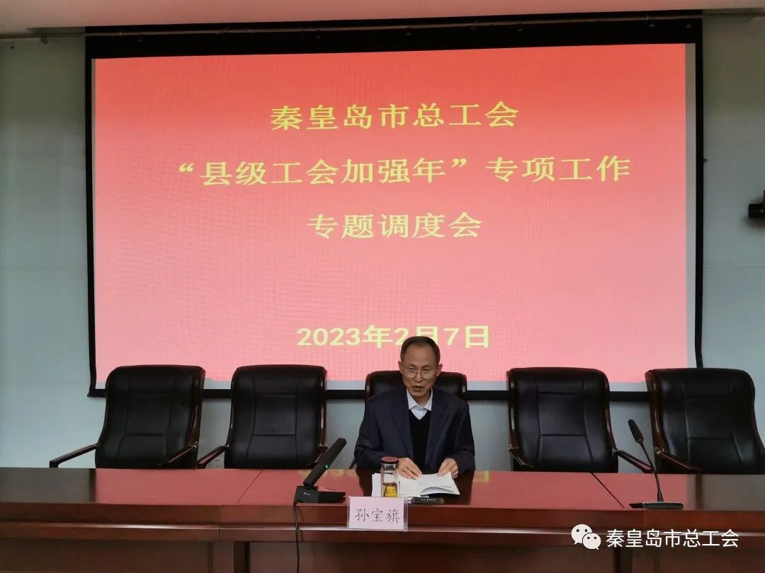 市总工会党组书记、常务副主席孙宝旗提出五点要求:一是2月底前市总班子成员全部完成对口联系点调研工作;二是召开党组会研究部署推进;三是3月上旬召开全市“县级工会加强年”专项工作推进会;四是在职工频道进行“县级工会加强年”专题展播;五是建立月调度、月通报制度,提升专项工作针对性。