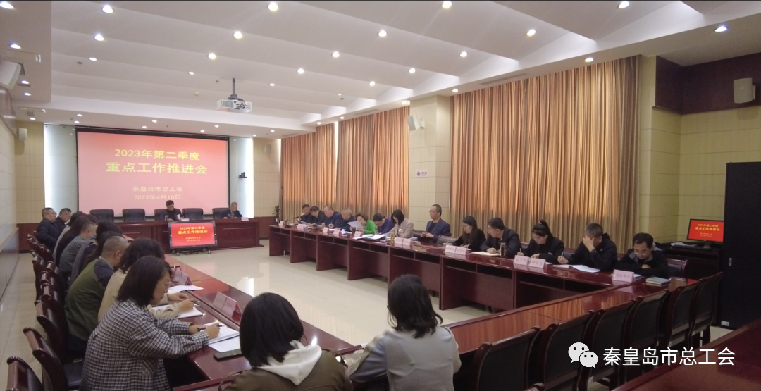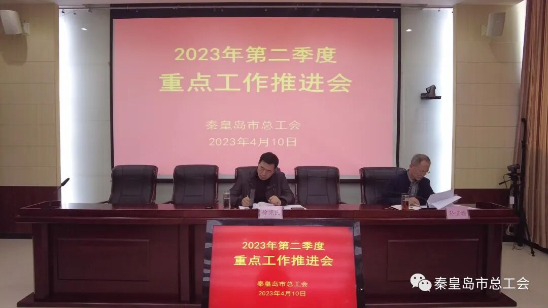 4月10日上午,金彩汇召开二季度重点工作推进会,市总工会主席徐宪民同志出席并讲话,市总工会党组书记、常务副主席孙宝旗同志提出工作要求。