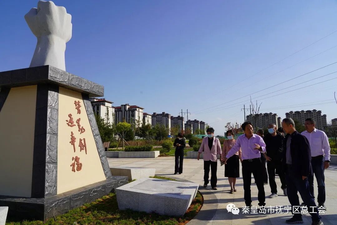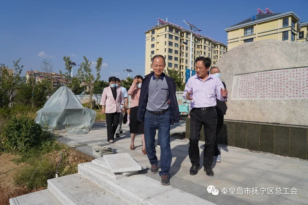 然后前往抚宁区劳动公园实地查看公园建设,听取李兵兵关于公园的设计思路和劳动元素的详细介绍。