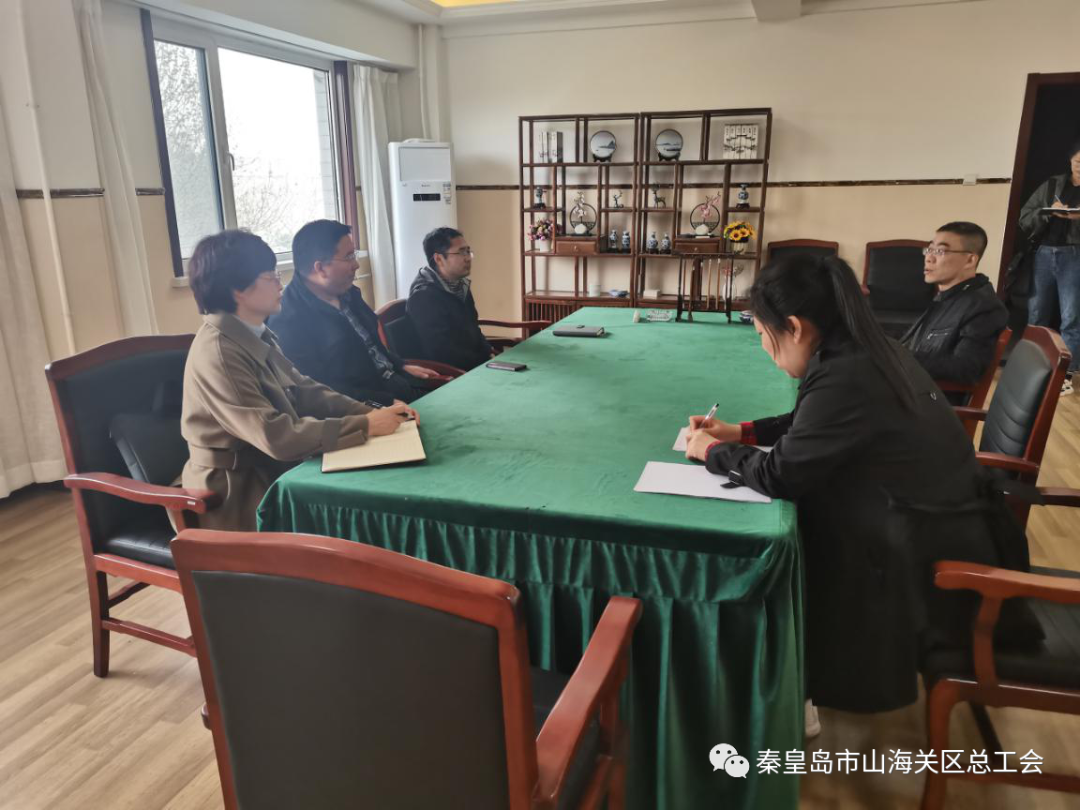 4月14日,金彩汇党组成员、副主席陈勇珲、组织部负责人赵晓杰、网络中心主任艾剑波一行来山海关区调研“县级工会加强年”工作,在区职工服务中心二楼进行专题座谈会。