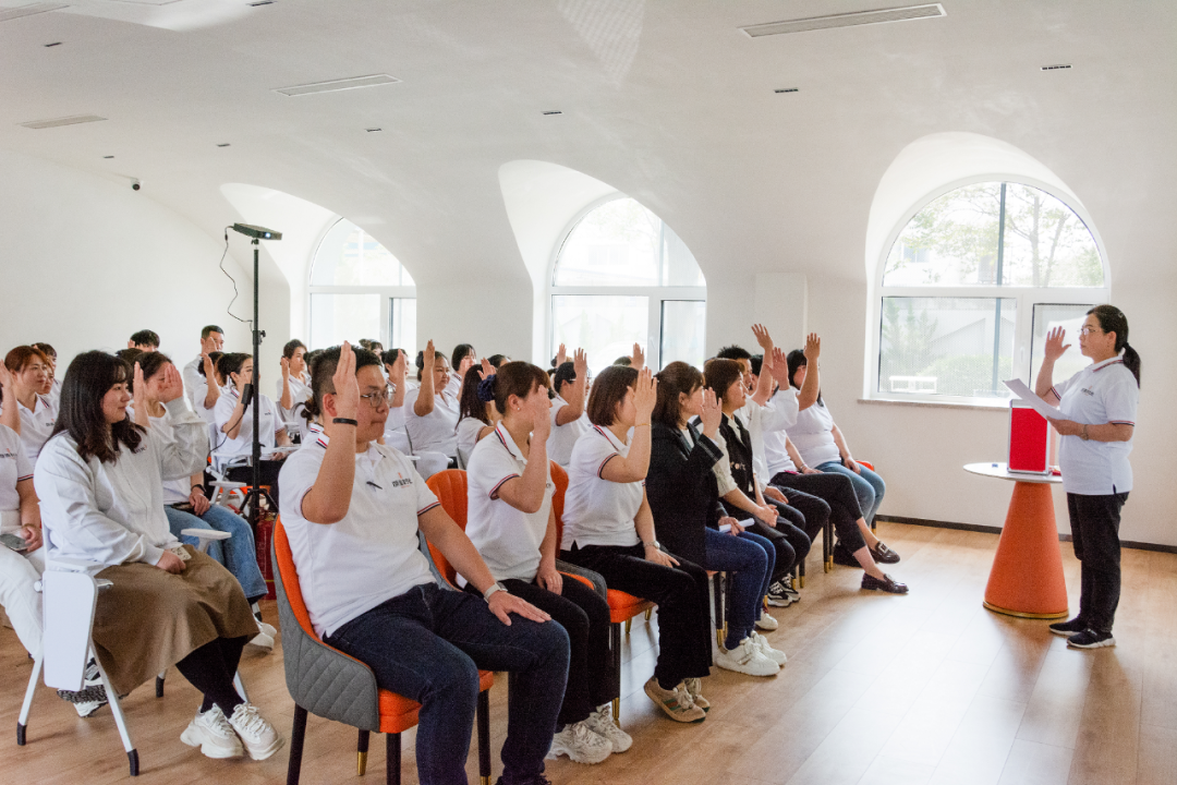 联合工会主席周紫娟在大会上表态:在上级工会的领导下,结合公司发展,会丰富大家业余生活,让员工拥有饱满的热情和力量,汇集全体职工的聪明才智推动公司的各项工作发展,为每一位客户提供更好的服务。