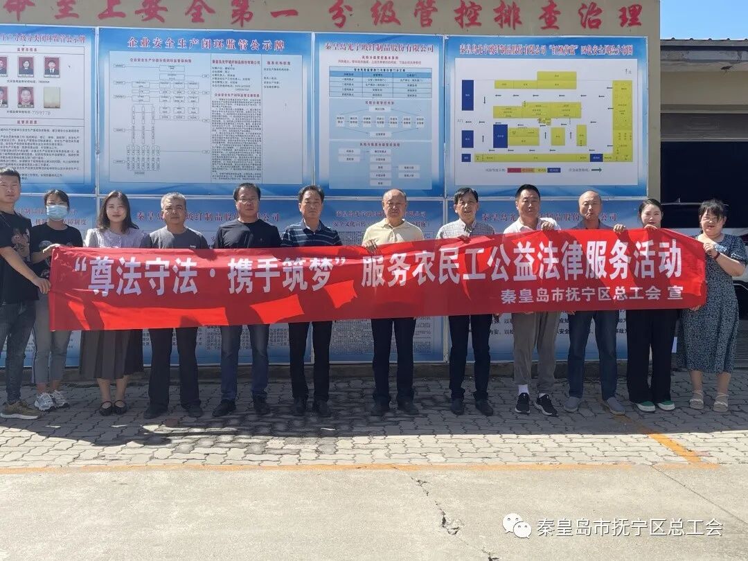 为进一步学习贯彻《工会法》等相关法律法规,增强广大职工学法、知法、懂法、守法的意识和能力,切实维护职工合法权益,构建和谐劳动关系。6月6日,抚宁区总工会深入秦皇岛光宇玻纤制品有限责任公司、秦皇岛骊骅淀粉股份有限公司,开展“尊法守法・携手筑梦”法律宣传活动。