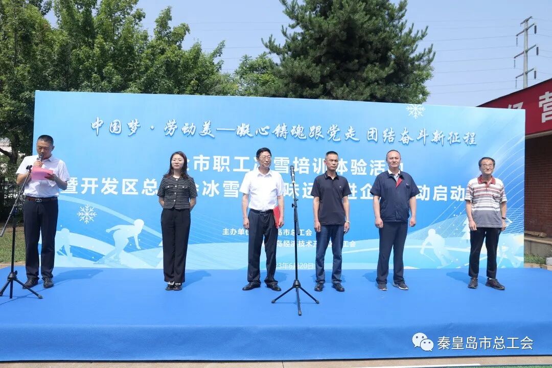 6月20日,“中国梦·劳动美——凝心铸魂跟党走 团结奋斗新征程”全市职工冰雪培训体验活动暨开发区总工会冰雪、趣味运动进企业活动启动仪式在乐金电子(秦皇岛)有限公司举行。市总工会党组成员、副主席吴军成,开发区总工会主席陈永红,开发区总工会经审主任安志山,乐金电子工会主席陈世明等出席活动。