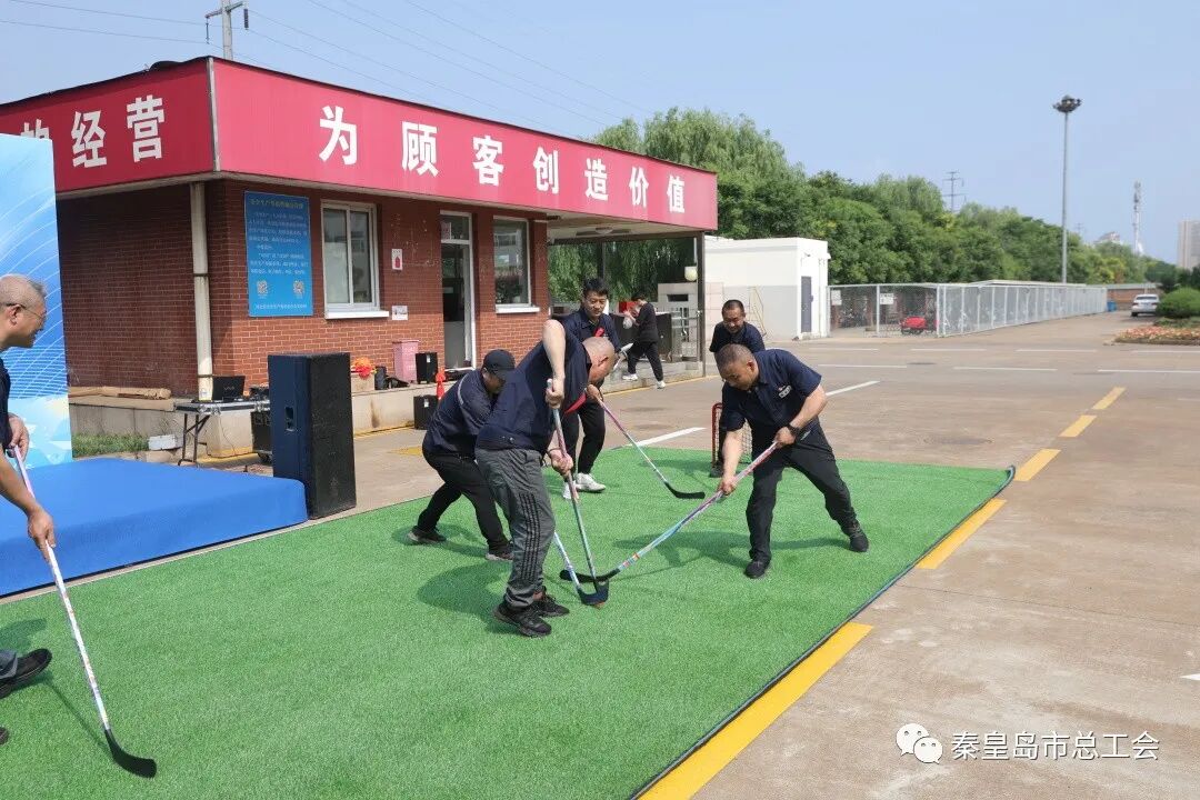 启动仪式结束后,现场进行了冰雪知识培训,开展了旱地冰壶、旱地冰球、龟兔接力赛跑、无敌风火轮等9个活动项目,吸引156名职工参与。