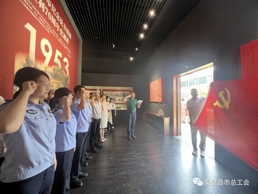 开展一次集体宣誓活动。市总工会第一党支部和第四党支部联合河北省公安厅海防管理总队秦皇岛支队联合开展了“走近红色资源 汲取奋进力量”主题党日活动,共同参观了秦皇岛市纪念抗美援朝胜利70周年史迹展,在展馆中,30余名党员重温了入党誓词,通过展馆中丰富的展品、图片、史料,切实感受到中国人民志愿军可歌可泣的战斗牺牲精神和中国人民伟大的爱国主义情怀,进一步强化党员意识,传承了红色精神。
