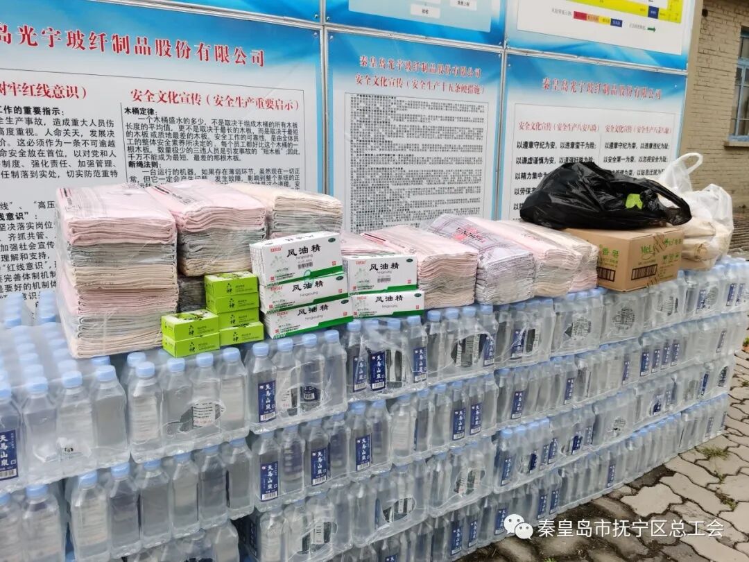 秦皇岛市抚宁区委常委、宣传部长杨德尧带队到秦皇岛光宇玻纤制品股份有限公司慰问在高温作业岗位上的一线劳动者。叮嘱他们一定要增强自我保护意识,注意防暑降温,确保安全生产,并送去茶叶、风油精、矿泉水等防暑降温用品。抚宁区总工会三级调研员曹新成和区总工会领导班子全员陪同。