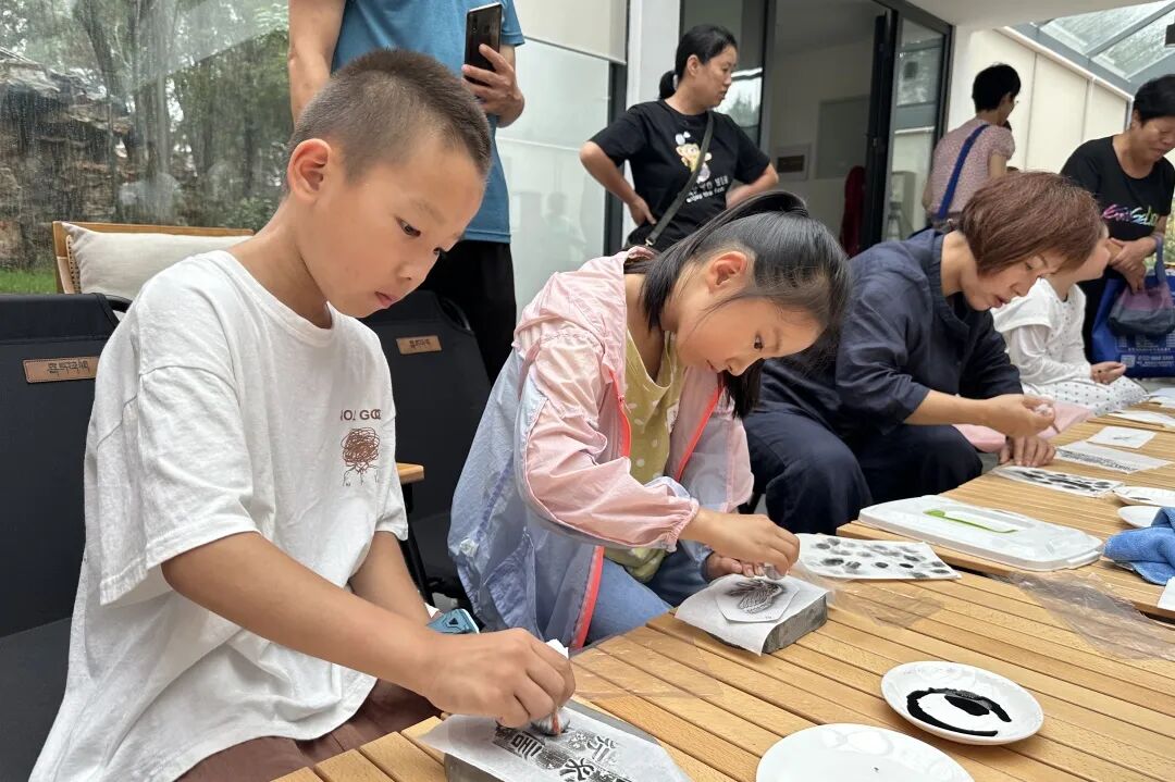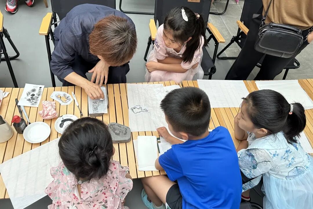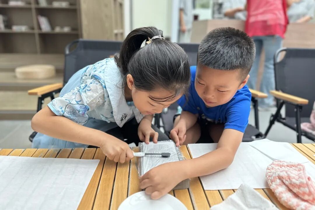7月12日,东山街道育花路社区联合青藤社工站、闲庭香绿轩健康营地,举办了“少年欢乐派”暑期公益课堂开班仪式。活动特别邀请北戴河汉珍斋的吴双老师,为孩子们讲解非遗拓片的知识及制作方法。用独创的蝈蝈,蜻蜓和弟子规格言等砖石雕刻作品,让每个孩子体验拓片创作。