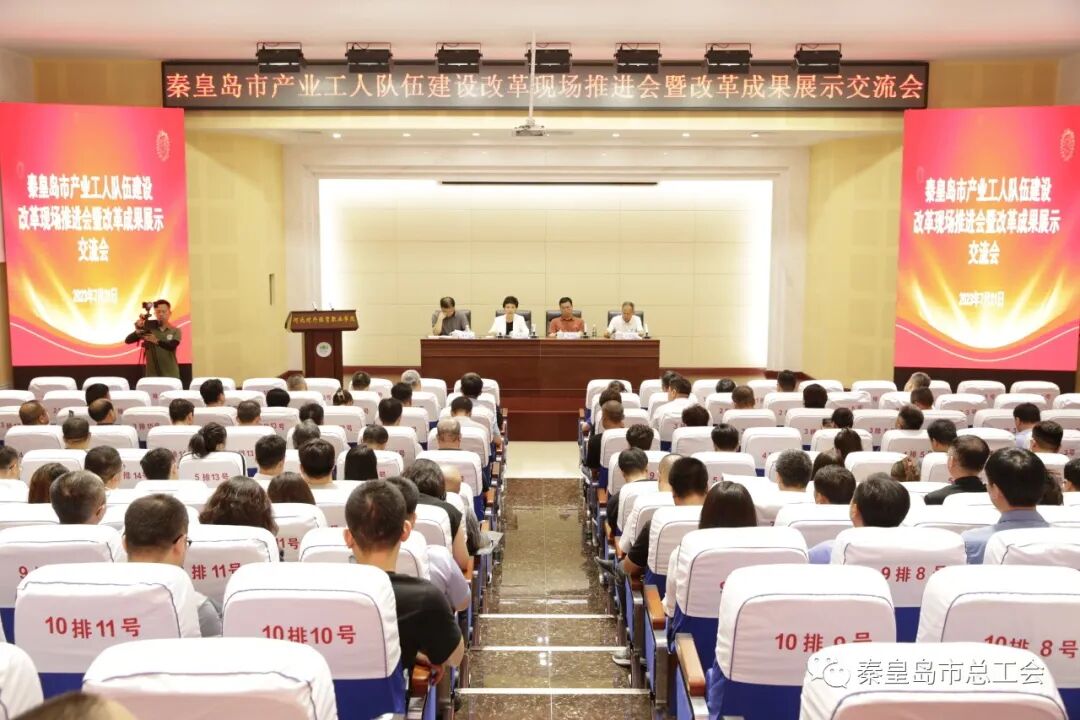 7月21日,秦皇岛市产业工人队伍建设改革现场推进会暨改革成果展示交流会在河北对外经贸职业学院图书馆报告厅召开。市委副书记张淑云出席会议并讲话,金彩汇主席徐宪民主持会议。市委副秘长曹永生,市总工会党组书记、常务副主席孙宝旗,12家市推进产业工人队伍建设改革协调小组成员单位主管领导、9个县区推进产业工人队伍建设改革协调小组组长、副组长、办公室主任,四批市推进产业工人队伍建设改革试点单位工会主席130多人参加了会议。